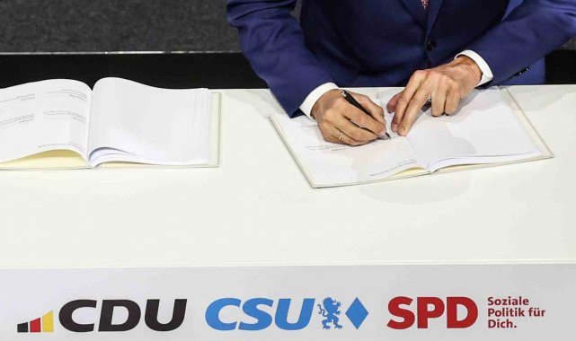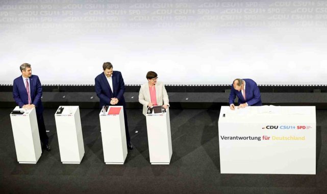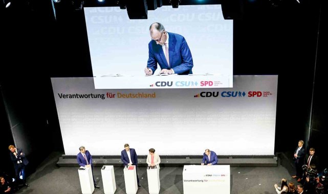 Almanya renklerinden dolayı "trafik ışığı koalisyonu" olarak adlandırılan koalisyon hükümetinin dağılmasından 6 ay sonra yeni hükümetine nihayet kavuştu. CDU, CSU ve SPD parti yönetimleri, bugün başkent Berlin'de "Almanya için sorumluluk" başlıklı 144 sayfalık koalisyon sözleşmesini birlikte imzaladı. Törene Hristiyan Demokrat Birlik (CDU) Genel Başkanı Friedrich Merz, Sosyal Demokrat Parti (SPD) Eş Genel Başkanları Saskia Esken ile Lars Klingbeil ve Hristiyan Sosyal Birlik (CSU) Genel Başkanı Marcus Söder katıldı.