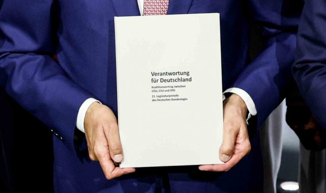 Almanya'da Hristiyan Demokrat Birlik (CDU) Genel Başkanı Friedrich Merz, Sosyal Demokrat Parti (SPD) Eş Genel Başkanları Saskia Esken ile Lars Klingbeil ve Hristiyan Sosyal Birlik (CSU) Genel Başkanı Marcus Söder, "Almanya için sorumluluk" başlıklı 144 sayfalık koalisyon sözleşmesini imzalayarak, yeni hükümeti kurdu.