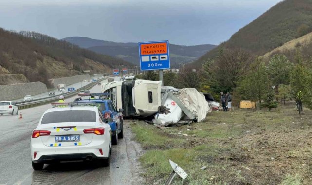 Kaza, Samsun'un Kavak ilçesi Tekke mevkisi Samsun-Ankara kara yolunun 33. kilometresinde meydana geldi. Edinilen bilgiye göre, Almanya'dan Türkmenistan'a gitmekte olan soğutucu yüklü Türkmenistan uyruklu Azız Myradov (26) idaresindeki WGM 7609 C çekici ve FG 2171 X dorse plakalı tır, direksiyon hakimiyetinin kaybedilmesi sonucu yoldan çıkarak devrildi. Yaralı sürücü ambulansla Samsun Şehir Hastanesi Acil Servisine kaldırılarak tedavi altına alındı. Jandarma kazayla ilgili inceleme başlattı.