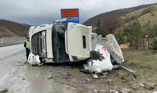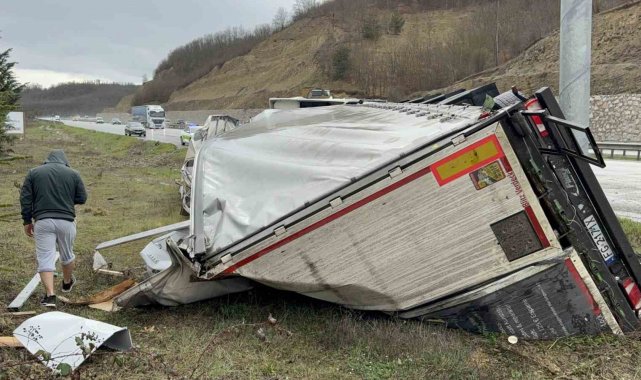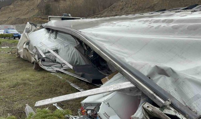 Almanya'dan Türkmenistan'a soğutucu taşıyan Polonya plakalı tırın Samsun'da devrilmesi sonucu meydana gelen kazada Türkmenistan uyruklu tır sürücüsü yaralandı.