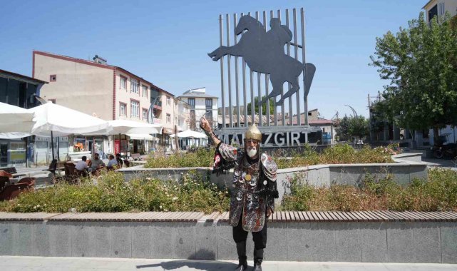 Alparslan kıyafeti ile Malazgirt'i gezen Hasan Keskin, "Malazgirtli çocuklar bana Alparslan dede diye sesleniyor"