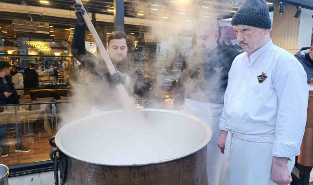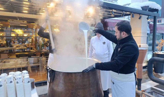 Kervan Kristal şubesi önünde kurulan dev bakır kazanda kaynatılan salep, pişirimi tamamlandıktan sonra vatandaşlara ikram edildi. Alpedo Kervan Lezzetler Grubu yetkilileri, kış mevsiminde vatandaşlara küçük de olsa bir ikramda bulunmak istediklerini belirtti.