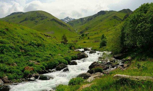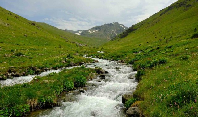 Gümüşhane'nin Torul ilçesi sınırlarındaki Dulağa Yaylası, bahar aylarında açan çiçekleri, karlı zirveleri ve coşkun dereleriyle ziyaretçilerine doğayla baş başa huzur dolu bir ortam sunuyor.