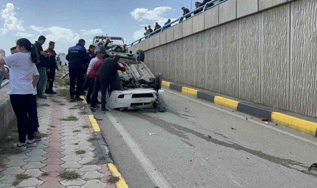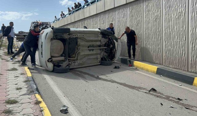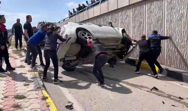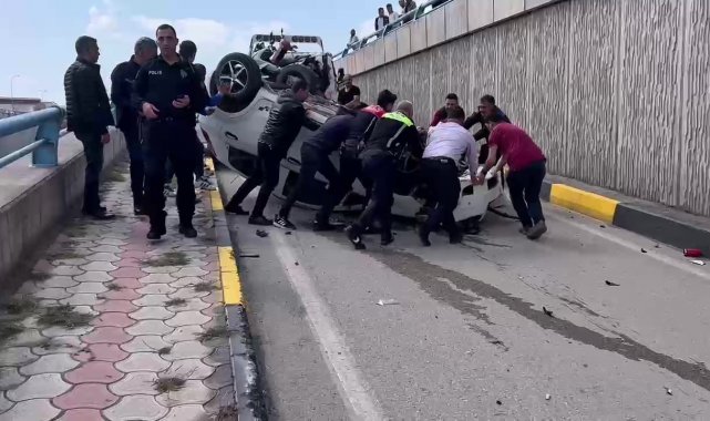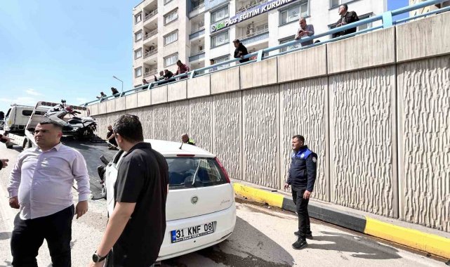 Hatay'da takla atarak ters dönen araçta bulunan 2 kişi yaralandı. Kaza sonrası üst geçitte bulunan vatandaşlar kazayı meraklı gözlerle film gibi izlediler.