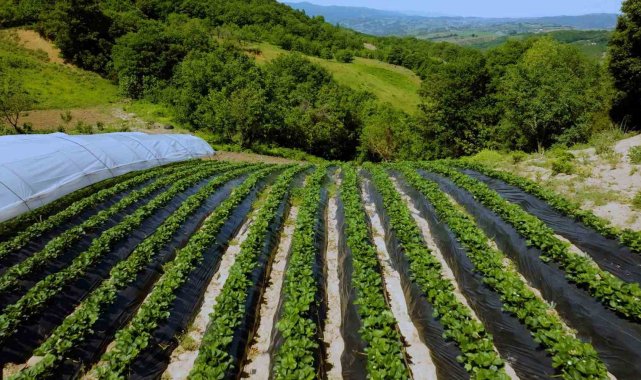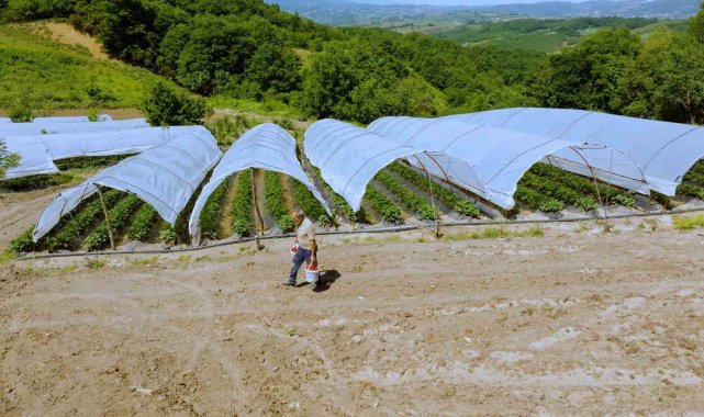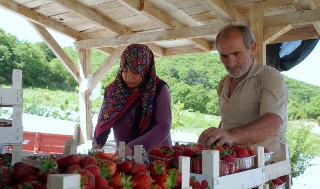 Kocaeli'de yüzde 50 hibeli ekipman desteği alan üreticiler, yetiştirdikleri çileklerin hasadına başladı.
