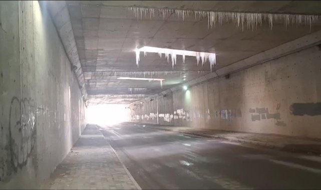 Eskişehir'in Gündoğdu Mahallesi Söğüt Ağacı Sokak üzerinde bulunan Şehit Ali Doğukan Kılınç Altgeçidi'nde, soğuk hava nedeniyle tavan kısmında oluşan buz sarkıtları sürücülere zor anlar yaşatıyor. Daha önce seyir halindeki bir aracın üzerine düşerek maddi hasara yol açan sarkıtlar, yoğun trafik akışının olduğu noktada tehlike saçmaya devam ediyor. Mahalle sakinleri, can ve mal güvenliği açısından herhangi bir olumsuzluk yaşanmadan sarkıtların temizlenmesini bekliyor.