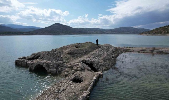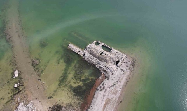 Altınapa Barajı'nda su seviyesi arttı, tarihi hanın bir kısmı yeniden sular altında kaldı