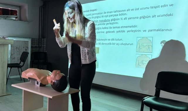 Eğitmen Uzman Hemşire Gülcan Okumuş tarafından İstanbul Ticaret Odası Şehit Süleyman Turan Anadolu Lisemizin konferans salonunda verilen ilk yardım kursuna, İlçe Milli Eğitim Müdürü İsmail Özden, Halk Eğitim Müdürü Salim Teoman Okuş ve Şube Müdürü Serdar Koyuncu katılım sağlayarak süreci yerinde incelediler.