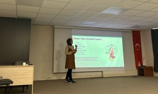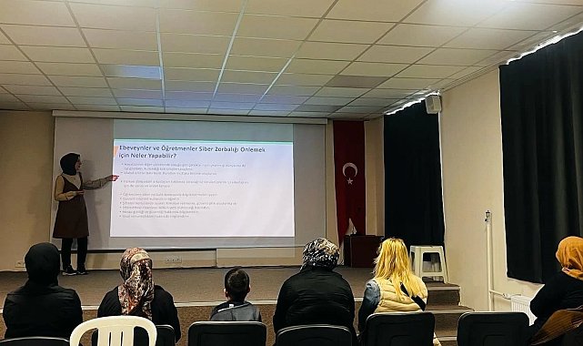Çocukların güvenli, sağlıklı ve bilinçli bir eğitim ortamında yetişmelerini sağlamak amacıyla koruyucu ve önleyici hizmetlerin yaygınlaştırılmasını hedefleyen bir vizyon doğrultusunda çalışmalarını sürdüren İlçe Milli Eğitim Müdürlüğü, Mustafa Kemal Ortaokulu Konferans Salonu'nda seminer düzenledi. Rehber Öğretmen Ayşenur Osal, seminerde okul aile birliği üyelerine ebeveynlerin dijital ortamda karşılaşabilecekleri riskler hakkında bilgiler verdi. Osal, özellikle siber zorbalıkla mücadele ve bağımlılıktan koruyucu yaklaşımlar üzerinde durdu.