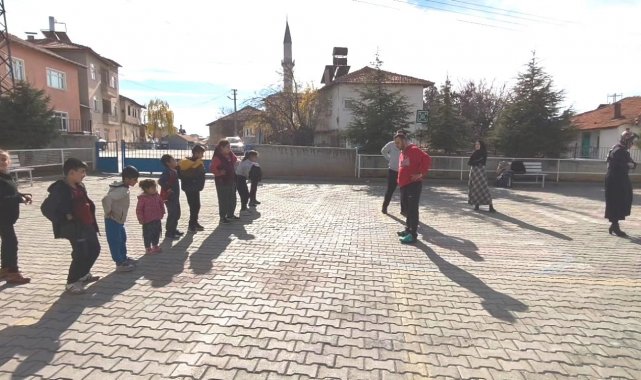 Altıntaş Zafer İlkokulu'nda özel öğrencilerin sabah sporu coşkusu