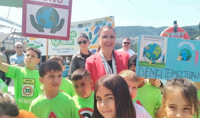 İstiklal İlkokulu öğrencilerinin de katıldığı etkinlikte, öğrenciler, "Denizler çöplük değildir", "Dünya Çevre Günü" yazılı pankartları da taşıdı.