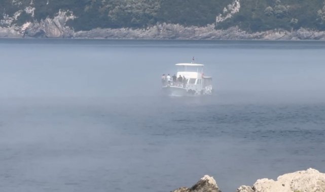Bartın'ın Amasra ilçesinde denizin üzerinde oluşan sis, kartpostallık görüntüler oluşturdu.