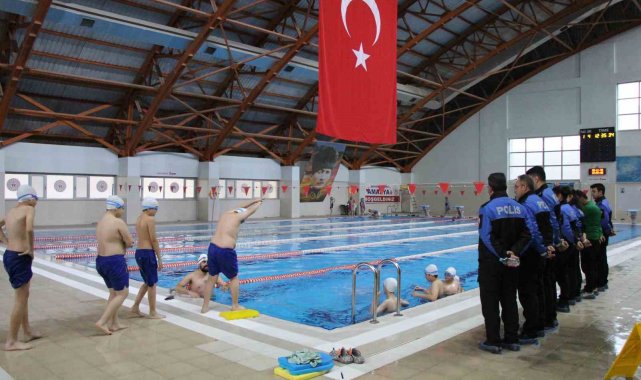 Denize kıyısı olmayan Amasya'da polislerin desteğiyle düzenlenen ücretsiz kursta çocuklarına havuzda yüzme eğitimi verilen anneler "Bizim zamanımızda böyle imkan yoktu" sözleriyle kendilerine kurs açılmasını istedi.