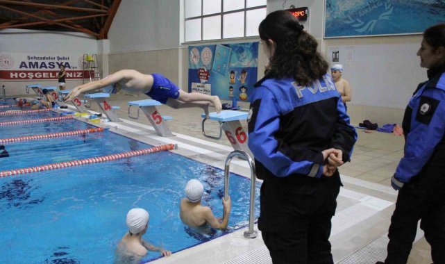 Çocukların sosyal gelişimlerinin desteklenmesi ve sportif faaliyetlere yönlendirilip topluma kazandırılmaları amacıyla Amasya Emniyet Müdürlüğü'nün uyguladığı "Geleceğimizi İnşa Ediyoruz" projesi kapsamında yüzme kursu düzenlendi. Amasya Gençlik ve Spor İl Müdürlüğü ile yapılan iş birliğiyle gerçekleşen kursa katılan 15 çocuğun ihtiyaç duydukları malzemeler spor çantası, terlik, mayo, yüzme gözlüğü, havlu ve bone polisler tarafından alındı. Havuzda özel antrenörlerin gözetiminde 2 ay önce eğitime başlayan çocuklar temel teknikleri öğrendi. Birbirleriyle yarışır hale geldi.