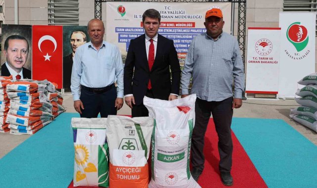 Amasya'da çiftçilere toplam 13 milyon TL değerinde kuraklığa dayanıklı yağlık ayçiçeği ve nohut tohumu desteği sağlandı. Yüzde 50 hibeli 21 bin 40 dekar alanda ekilecek bin 52 torba ayçiçeği tohumu ve 4 bin 625 dekar alanda ekilecek 55 bin 500 kilo nohut tohumu düzenlenen törenle çiftçilere dağıtıldı.