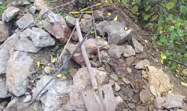 Şehirüstü Mahallesi'nde definecilerin dağın içine 20 metre tünel kazdığı ortaya çıkarken, olay yerinde kazı malzemeleri ele geçirildi. Olayın aydınlatılmasına ilişkin inceleme başlatıldı.
