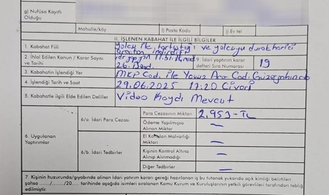 Amasya'da ücretsiz seyahat hakkına sahip engelli yolcuyla tartışıp araçtan indirdiği tespit edilen özel halk otobüsü şoförüne 2 bin 953 TL para cezası uygulandı.