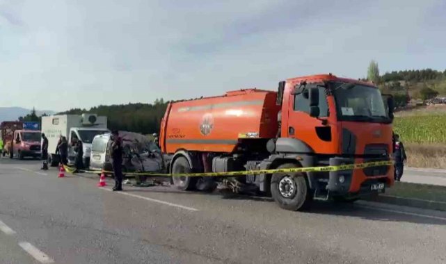 Amasya'da önündeki tıra çarparak savrulan hafif ticari araçtaki 5 kişiden 4'ü olay yerinde hayatını kaybetti.