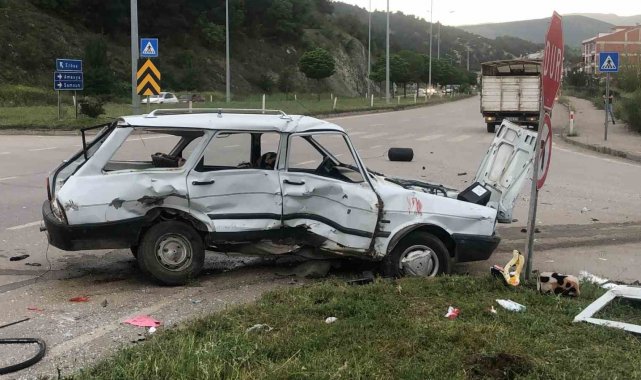 Amasya'nın Taşova ilçesinde iki otomobilin kavşakta çarpıştığı kazada 2 sürücü yaralandı. Kaza anı kameraya yansıdı.
