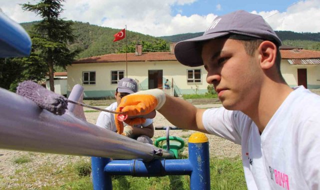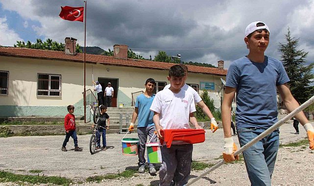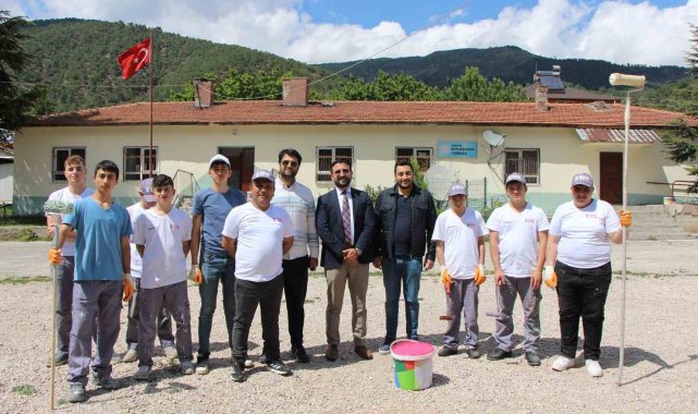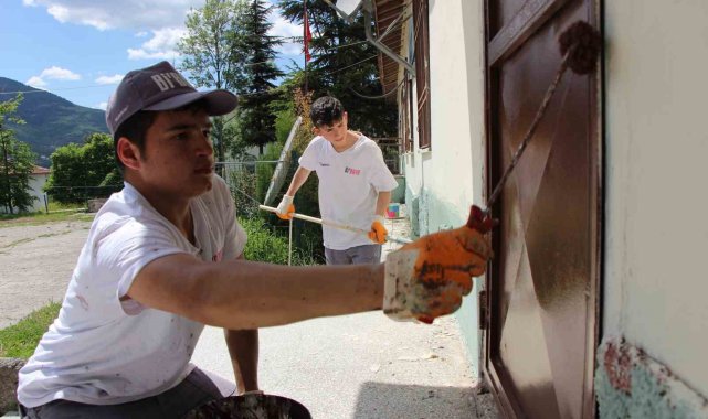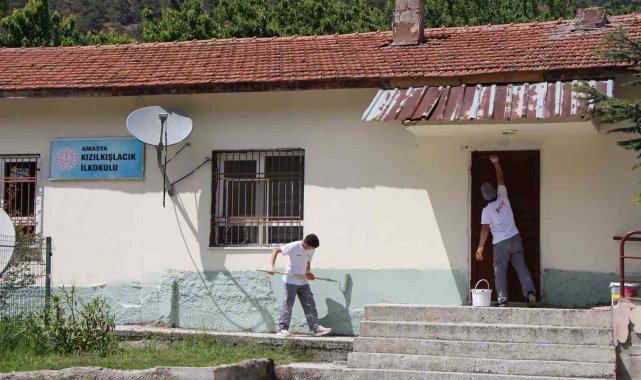 Amasya'da köy okulunu liselilerin 'tamir takımı' boyadı