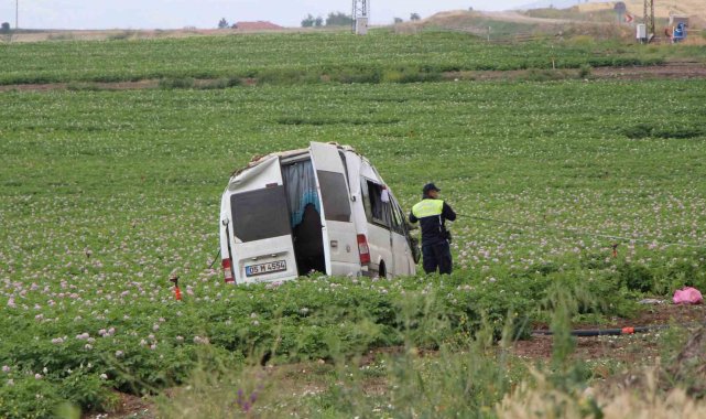 Amasya'da kontrolden çıkan minibüsün tarlaya uçması sonucu meydana gelen kazada 1 kişi öldü, 4 kişi yaralandı.
