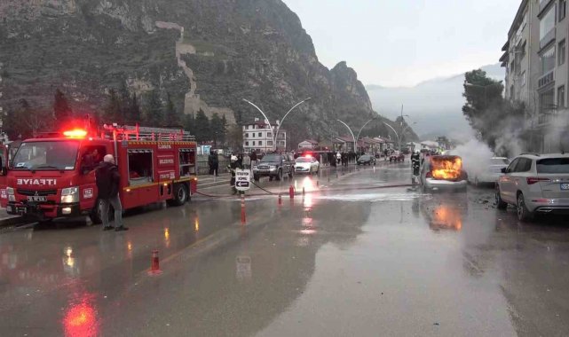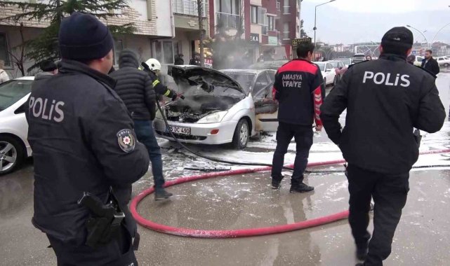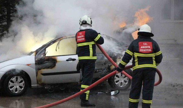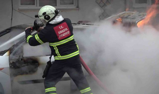 Amasya'da seyir halindeki bir otomobil alev alev yandı. Otomobilde yaşanan patlamalar paniğe neden oldu. Etraftaki araçlara da sıçrayan alevler güçlükle söndürüldü.