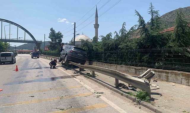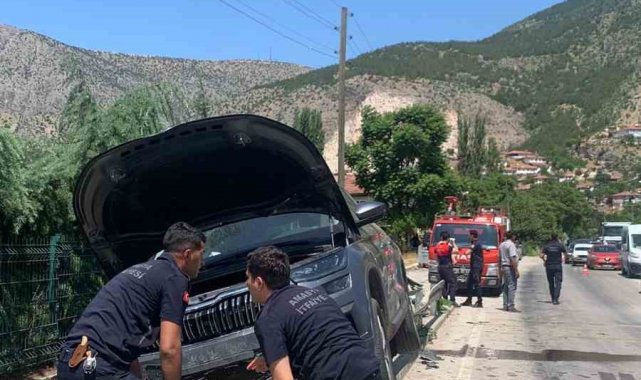 Amasya'da otomobil bariyere asılı kaldı: 1 yaralı