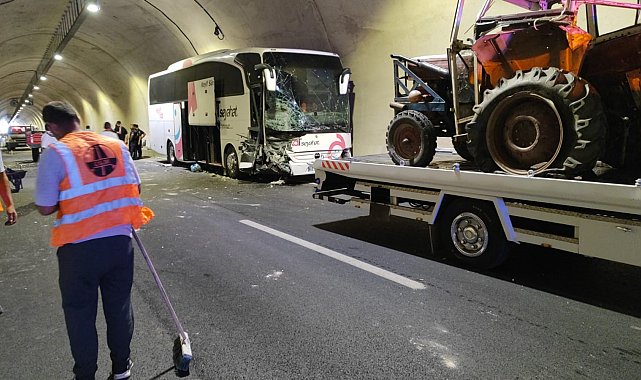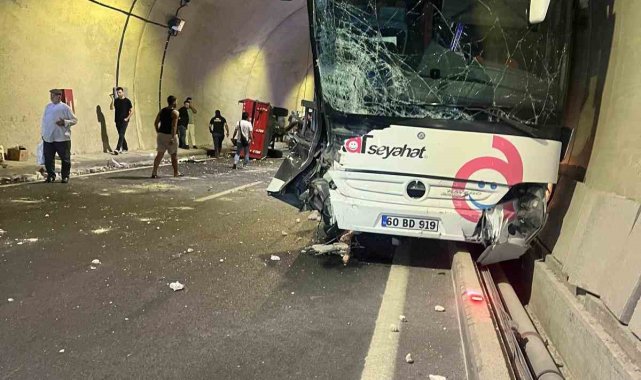 Amasya'da tünelde yolcu otobüsüyle traktör çarpıştı, kaza 1 kişi yaralandı.