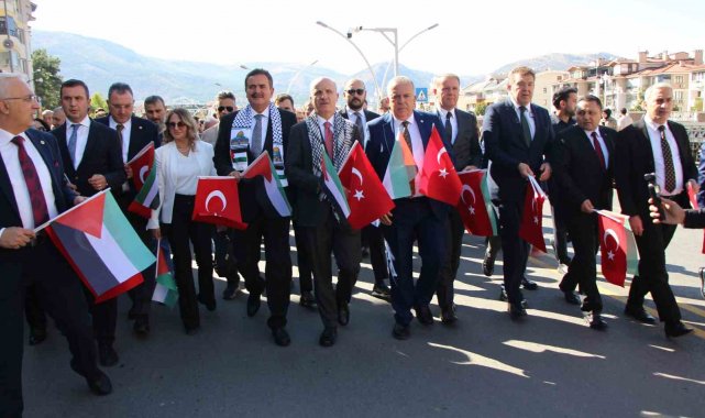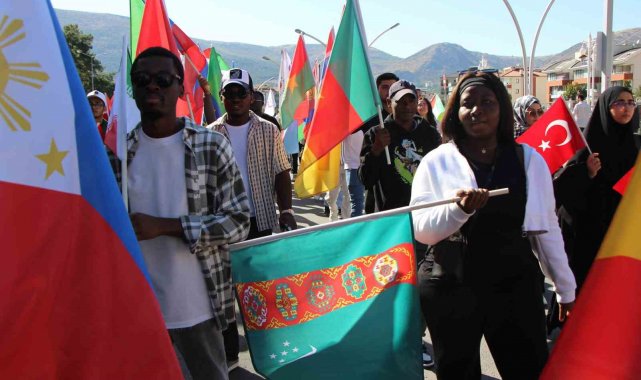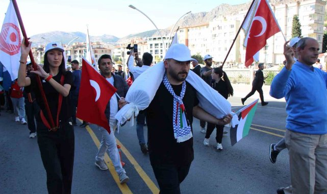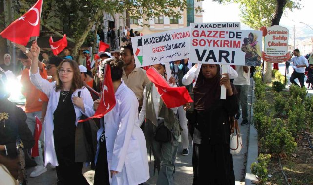 Amasya'da üniversite öğrencileri tarafından 'Dilimiz farklı, kalbimiz aynı' temalı Filistin'e destek yürüyüşü düzenlendi.