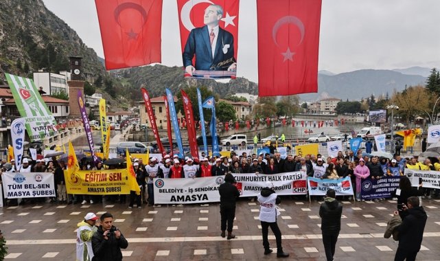 Amasya'da yağmur altında 1 Mayıs kutlaması yapıldı.