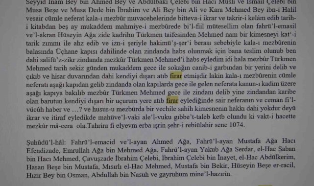 "İncelenen defterlerdeki tek firar vakası"