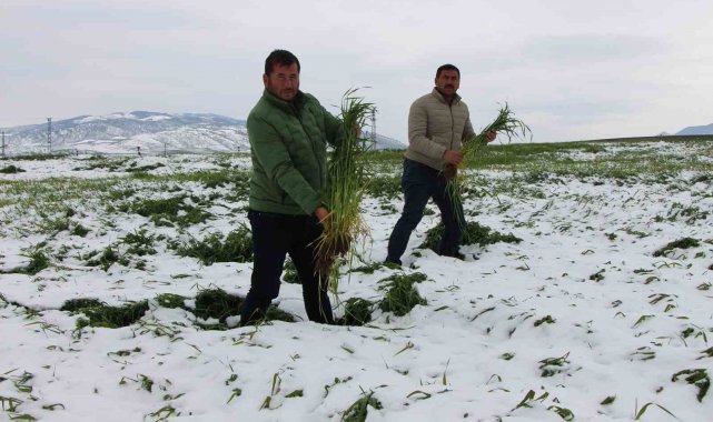 Köylerinde kalınlığı 30 santimi geçen karla kaplı arazilerindeki ürünlerin zarar gördüğünü belirten Oluz Köyü Muhtarı Sami Baş, "Nisan ayındaki kara kış bizi perişan etti. Büyük sıkıntı var" diye konuştu.