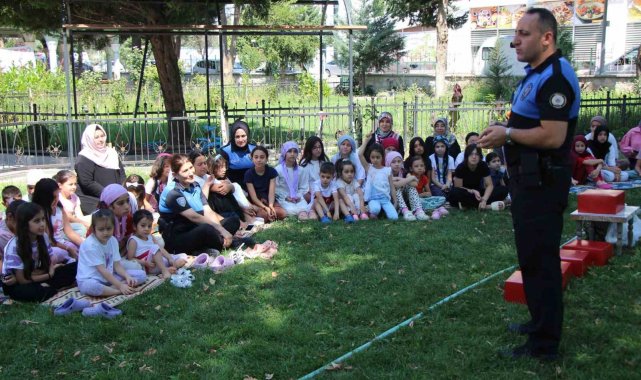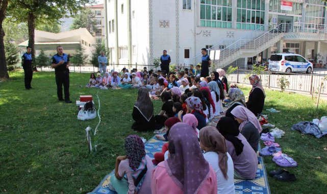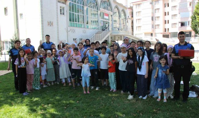 Kurs sonrası cami bahçesinde Toplum Destekli Polislik Şubesi görevlilerince çocuklara yönelik kişisel güvenlik eğitimi düzenlendi. Eğitimde çocukların kendi güvenliklerini nasıl sağlayacakları, çevrelerinde güvensiz durumlarla karşılaşmaları halinde ne yapmaları gerektiği, güvenli internet ve sosyal medya kullanımı ile internetteki riskler konularını özellikle anlatıldı. Trafik ve emniyet kemeri kullanımı hususlarındaki bilgiler aktarılan çocukların yönelttiği sorular da cevaplandırıldı.