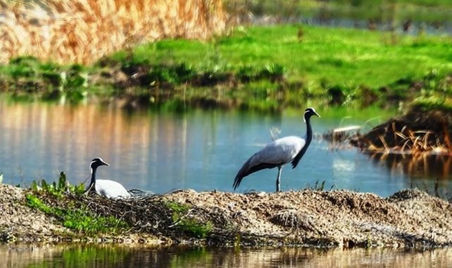 Türkülere konu olan telli turnaların Afrika'dan birlikte uçup geldikleri yavrusu da görüntülendi