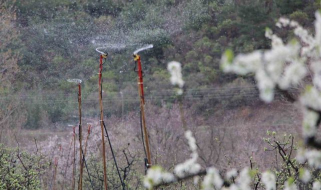 Amasya'da bir çiftçi, Mart ayında havaların mevsim normalinin üstünde ısınması nedeniyle erkenden çiçek açan 300 meyve ağacını aniden bastıran aşırı soğuğa karşı yağmurlama ve dondurma sistemi sayesinde korudu. Çiftçi İhsan İnce, yüzde 100 başarı sağlayan yağmurlama sistemini ağaçların gübrelenmesinde de kullanıyor.