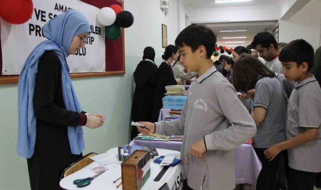 Amasya'da lise öğrencileri Anneler Günü öncesi kitaplarını satışa çıkararak elde edilen geliri Gazze'deki Filistinli çocuklara destek için göndermek amacıyla etkinlik düzenledi.