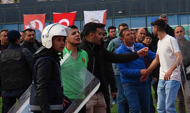 Amatör maçta taraftarlar birbirine girdi, polis güçlükle ayırdı