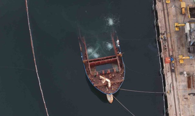 Ambarlı'da yan yatan gemi sualtında parçalanıyor
