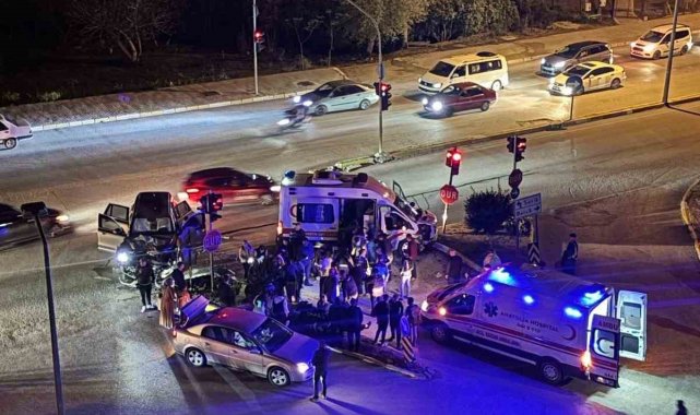 Ambulans ile cipin çarpıştığı ve 9 kişinin yaralandığı kaza anı kamerada
