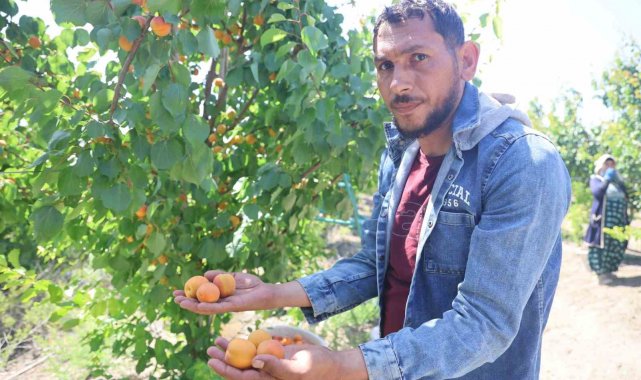 60 dönümlük bahçede yaklaşık 100 ton yaş kayısı hasadı beklediğini ifade eden genç çiftçi Adnan Abay, "Genç yaşta çiftçilik ve toprağa emek vermek güzel, toprağa verdiğin emeği geri alabilmek güzel. 3 yıldır bu işle uğraşıyorum, burada kayısı hasadımızı yapıyoruz. Hasadımız güzel gidiyor. Burada 60 dönümlük bir arazimiz var. Flopria, orta erkenci çeşidimiz var ve buna rağmen hasadımız iyi gidiyor. Erkenci çeşitlerimizi don vurdu. Orta erkencide çok bir sıkıntı yaşamadık. Şu an hasadımıza iki üç gündür devam ediyoruz. Bugün üçüncü günümüz. Meyvelerimiz kızardıkça meyvelerimizi topluyoruz. Geçen yıla göre hasadımız biraz daha iyi durumda. Ağaçlarımız gelişti ve büyüdü. Dona rağmen yine ağaçlarımızda çiçek dökülmelerimiz oldu ama çok şükür hasadımız ve verimimiz iyi duruma geldi. Kaliteli meyve yetiştirmenin derdindeyiz. Elimizden geldiğince de güzel meyve yetiştirmeye çalışıyoruz. Şu an kayısının bahçeden çıktığı fiyat 30 ila 35 TL arasında oynuyor. Meyvenin kalitesine göre değişiyor. Kayısı pazarlarda 60 ila 70 TL arasında fiyatlar değişiyor. Hasadımız bir haftaya kadar sürmeye devam edecektir. Meyve kızardıkça meyvelerimizi alıyoruz ve topluyoruz. Burası 60 dönüm ve 5 bin ağacımız var. Biz ortalama buradan 80 ila 100 ton kayısı toplamayı bekliyoruz" ifadelerini kullandı.
