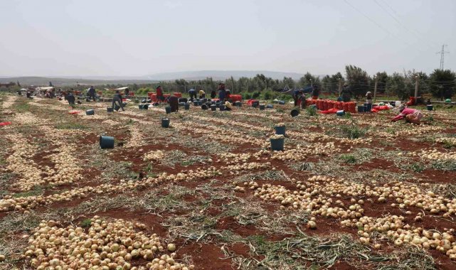 Türkiye'nin en bereketli topraklarından olan ve birçok ürünün yetiştiği Hatay'ın Amik Ovası'nda baharın gelmesiyle ürünler hasat edilmeye başlandı. Reyhanlı ilçesi Bükülmez Mahallesi'nde 45 dönümlük tarlada ekimi yapılan soğanda da hasat başladı. Kuraklığa rağmen rekoltenin yüksek olduğu soğan, tarladan 15 TL ile 20 TL'yi bulan fiyatlarla alıcı buluyor. Hasat edilen soğanların ihracat yoluyla Rusya gibi Balkan ülkelerine gönderildiğini ifade eden üretici Reşit Kaya, Eylül ayına kadar soğan hasadının devam edeceğini söyledi.
