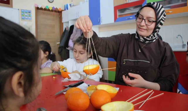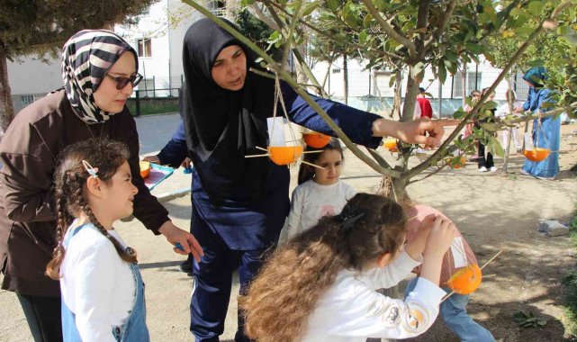 Ana sınıfında portakallar kuşlar için yemlik ve yuvaya dönüştü