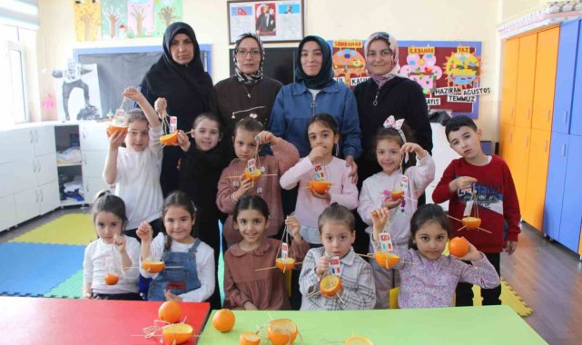 Amasya'da minik öğrenciler, anneleri ve öğretmenleriyle birlikte portakal kabuklarını kuşlar için yemlik ve yuvaya dönüştürerek ağaç dallarına astı. Portakal kabuklarının doğada kendiliğinden çözünerek çevreye zarar vermediği uygulama ile çocuklara sıfır atık ve doğa dostu olma bilinci aşılanmaya çalışıldı.