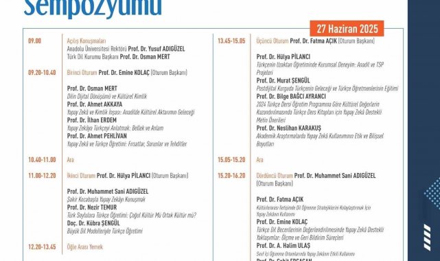 Dr. Emine Kolaç, Prof. Dr. Hülya Pilancı, Prof. Dr. Fatma Açık ve Prof. Dr. Muhammet Adıgüzel'in oturum başkanlığında, toplam dört oturumda 15 sunum gerçekleştirilecek. Dijital dönüşüm, yapay zekâ, büyük dil modelleriyle Türkçe öğretimi gibi pek çok konuda yapılan araştırmaların paylaşılacağı sempozyumun, Türk dilinin önemli katkılar sunması bekleniyor.