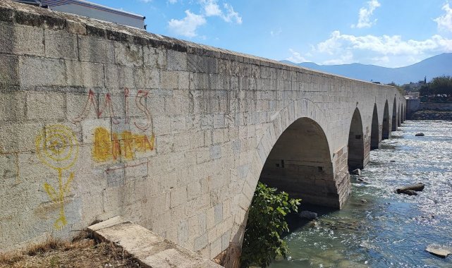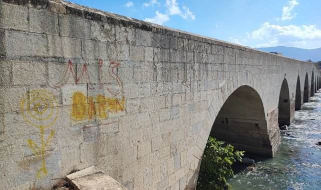Anadolu'nun bilinen ilk Roma köprüsüne sprey boyayla yazılama yapıldı