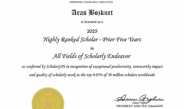 Akademik performansın ölçülmesinde dünyanın en kapsamlı ve veri odaklı analiz platformlarından biri olan ScholarGPS, 2025 yılı 'Highly Ranked Scholar' (Yüksek Dereceli Bilim İnsanı) listesini açıkladı. Anadolu Üniversitesi Açıköğretim Fakültesi Dekanı Prof. Dr. Aras Bozkurt, akademik üretkenliği, çalışmalarının kalitesi ve oluşturduğu küresel etki ile uzaktan eğitim alanında dünyada 1'inci sıraya yerleşerek tarihi bir başarıya imza attı.