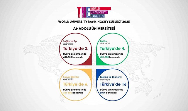 Dünyanın en bilinen uluslararası yükseköğretim derecelendirme kuruluşlarından biri olan Times Higher Education (THE) tarafından 2025 Dünya Üniversite Sıralamalarının ardından 'Alan Bazlı Sıralamalar' da açıklandı. Yayınlanan alan bazlı sıralamalara göre Anadolu Üniversitesi; Tıp ve Sağlık alanında Türkiye'de 3'ncü, dünyada 401 ila 500 bandında, Eğitim alanında Türkiye'de 4'ncü, dünyada 401 ila 500 bandında, Sosyal Bilimler alanında Türkiye'de 6'ncı, dünyada 601 ila 800 bandında, Ekonomi ve İşletme alanında ise Türkiye'de 16'ncı sırada kendine yer buldu.