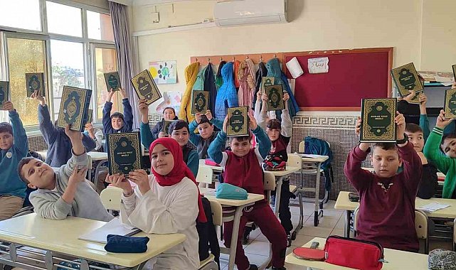 Mersin'in Anamur ilçesinde, ortaokullarda seçmeli Kur'an-ı Kerim dersini tercih eden öğrencilere Kur'an-ı Kerim hediye edildi.