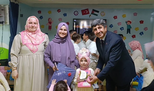 Miniklerin heyecanlı anlarına ortak olan İlçe Müftüsü Mehmet Fidan, "Kur'an okumayı öğrenen yavrularımıza Kur'an ile huzurlu bir ömür geçirmelerini niyaz ediyor, onları yetiştiren anne babalarına ve hocalarına teşekkür ediyorum. Bu evlatlarımızın Kur'an-ı Kerimi küçük yaşta öğrenmeye başladıklarına hep birlikte şahitlik ediyoruz. İnşallah bu evlatlarımızın hafız olmalarını da Rabbim nasip eylesin. Bu vesile ile yavrularımızı yetiştiren Kur'an kursu öğreticilerimize, velilere ve emeği geçen herkese teşekkür ediyorum" dedi.