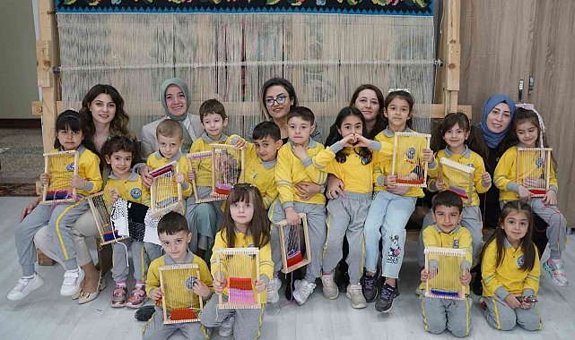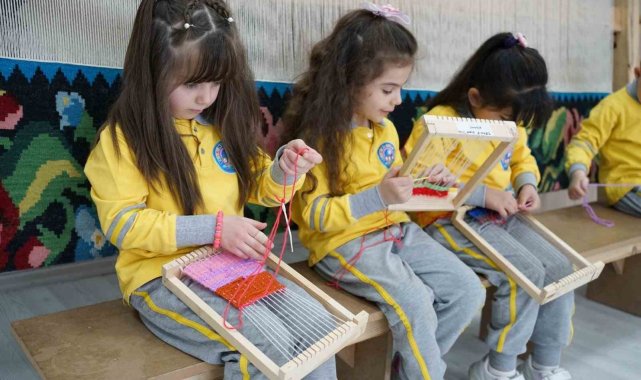 Erzurum'un Palandöken ilçesindeki Yenikent Anaokulu öğrencileri, mini tezgahları ile Olgunlaşma Enstitüsü'ndeki kilim dokumacılığının büyülü dünyasında gözlem yaptılar.
